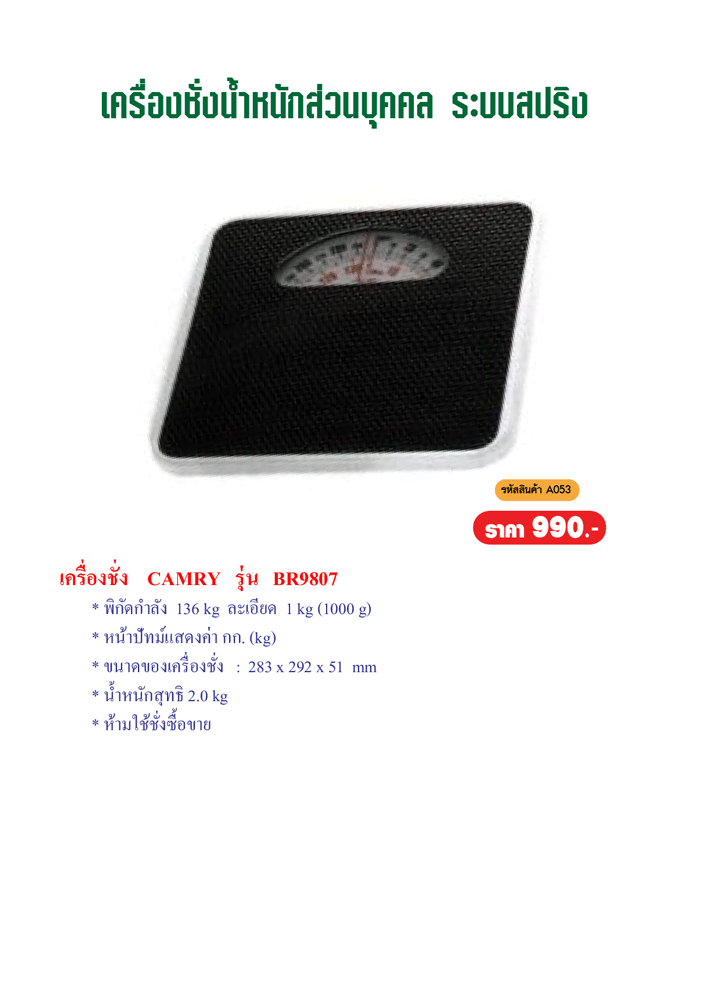 ชื่อสินค้า : เครื่องชั่งน้ำหนัก Camry BR9807 (แบบเข็ม)